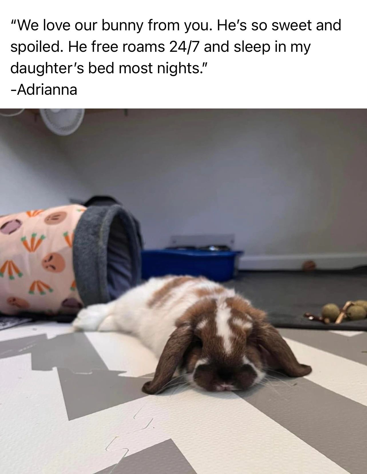 PLEASE FULLY EXAMINE YOUR BUNNY BEFORE YOU COMPLETE YOUR PURCHASE! We do our best to accurately assess gender, color, and quality, but you are responsible for approving the rabbit before completing the purchase. If any bunny would become sick or die while in our care, we will refund the deposit. Bunny Deposits are non refundable otherwise.