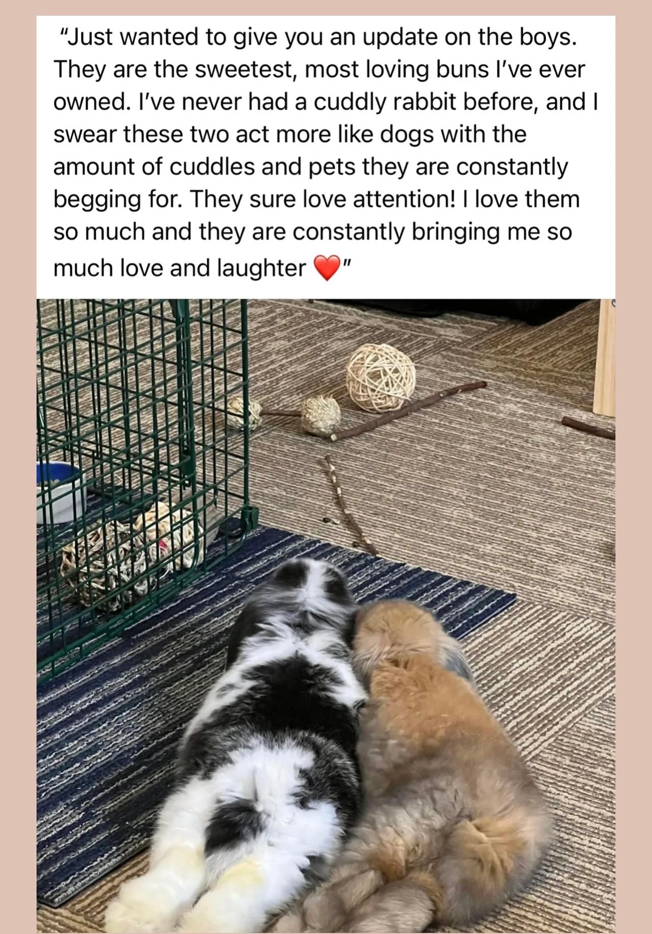 Any bunny that is not picked up within one week of it‘s “ready to go“ date will be re-listed for sale.