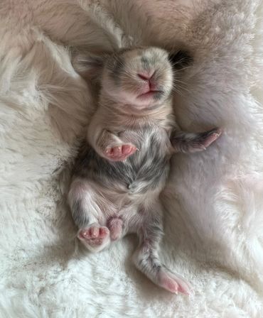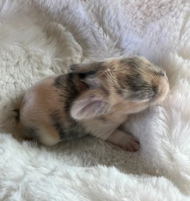 Our bunnies are handled daily and raised in a home environment to ensure they are well-socialized and friendly. They will be started on litter box training and will go home with a bag of transition pellets and their birth certificate.