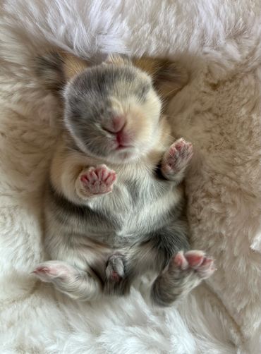 Our bunnies are handled daily and raised in a home environment to ensure they are well-socialized and friendly. They will be started on litter box training and will go home with a bag of transition pellets and their birth certificate.