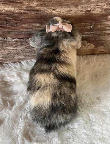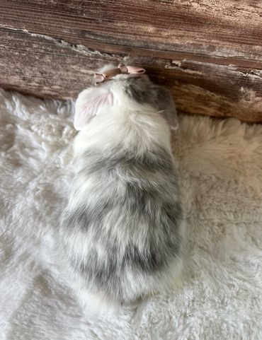 Our bunnies are handled daily and raised in a home environment to ensure they are well-socialized and friendly. They will be started on litter box training and will go home with a bag of transition pellets and their birth certificate.