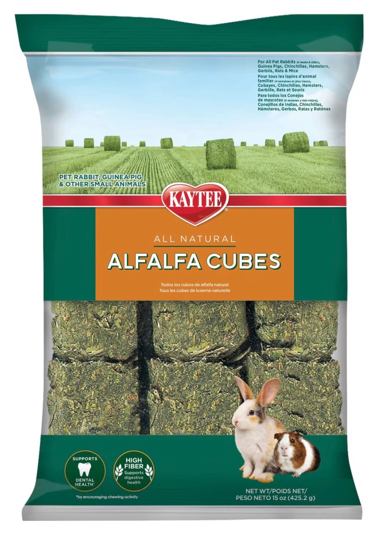 We feed Kalmbach Feeds Best in Show 16% Professional Rabbit Pellets that we order from Chewy. We feed all of our babies Alfalfa hay. When the bunnies leave here they will be fine switching over to Timothy hay as they will no longer require alfalfa. Our buns will drink from a water bowl or a water bottle. Please let me know if I can help with any questions!